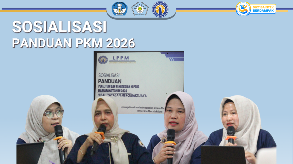 Padang — Lembaga Penelitian dan Pengabdian kepada Masyarakat (LPPM) Universitas Mercubaktijaya menyelenggarakan Sosialisasi Panduan Penelitian dan Pengabdian kepada Masyarakat Tahun 2026 Hibah Yayasan MERCUBAKTIJAYA pada Rabu, 26 Februari 2026. Kegiatan tersebut berlangsung di Ruang Rapat Gedung E dan diikuti oleh seluruh dosen di lingkungan Universitas Mercubaktijaya.